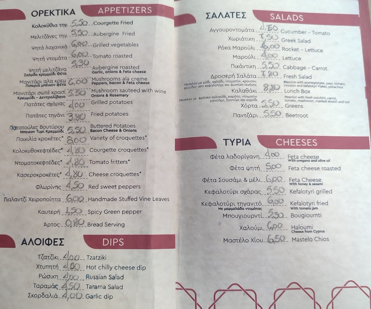 Guests can expect classic starters like creamy tzatziki and fresh Greek salad, while main dishes range from grilled seafood such as tender calamari to savory meat options like chicken souvlaki and μοσχαρίσια μπριζόλα. These plates often come accompanied by generous sides, including crisp fries or seasonal grilled vegetables, fitting the warm, unpretentious vibe of the place.