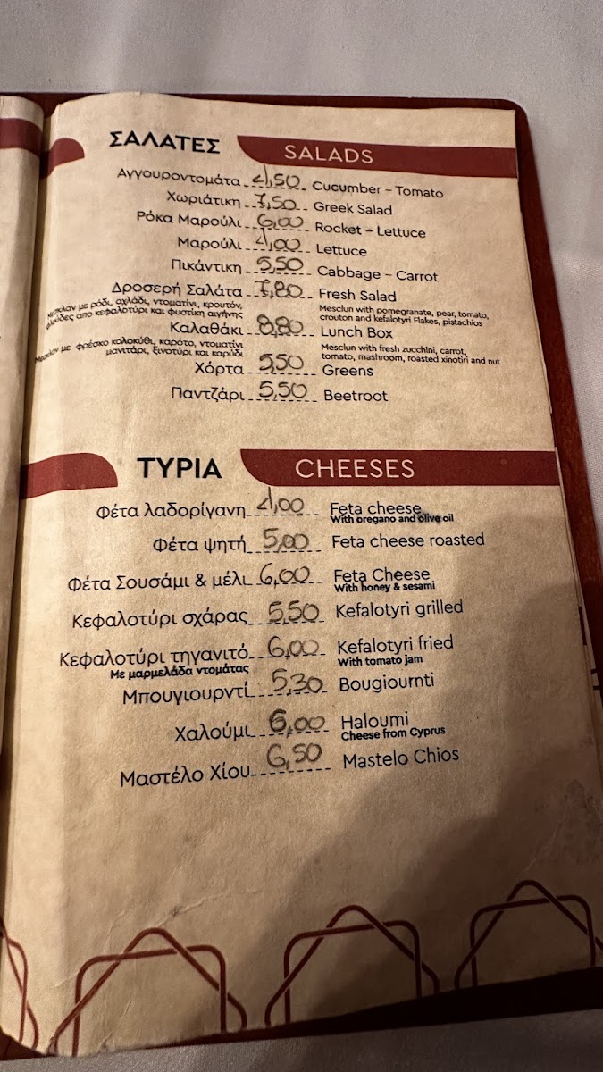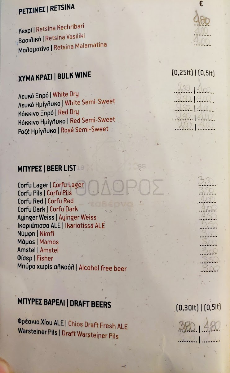 The drinks menu includes traditional choices such as local wines and retsina, which pair naturally with the simple, well-crafted flavors of the food. Whether visiting for a light bite or a full meal, the selection encourages slow, enjoyable dining often enhanced by the lively yet friendly tavern setting.